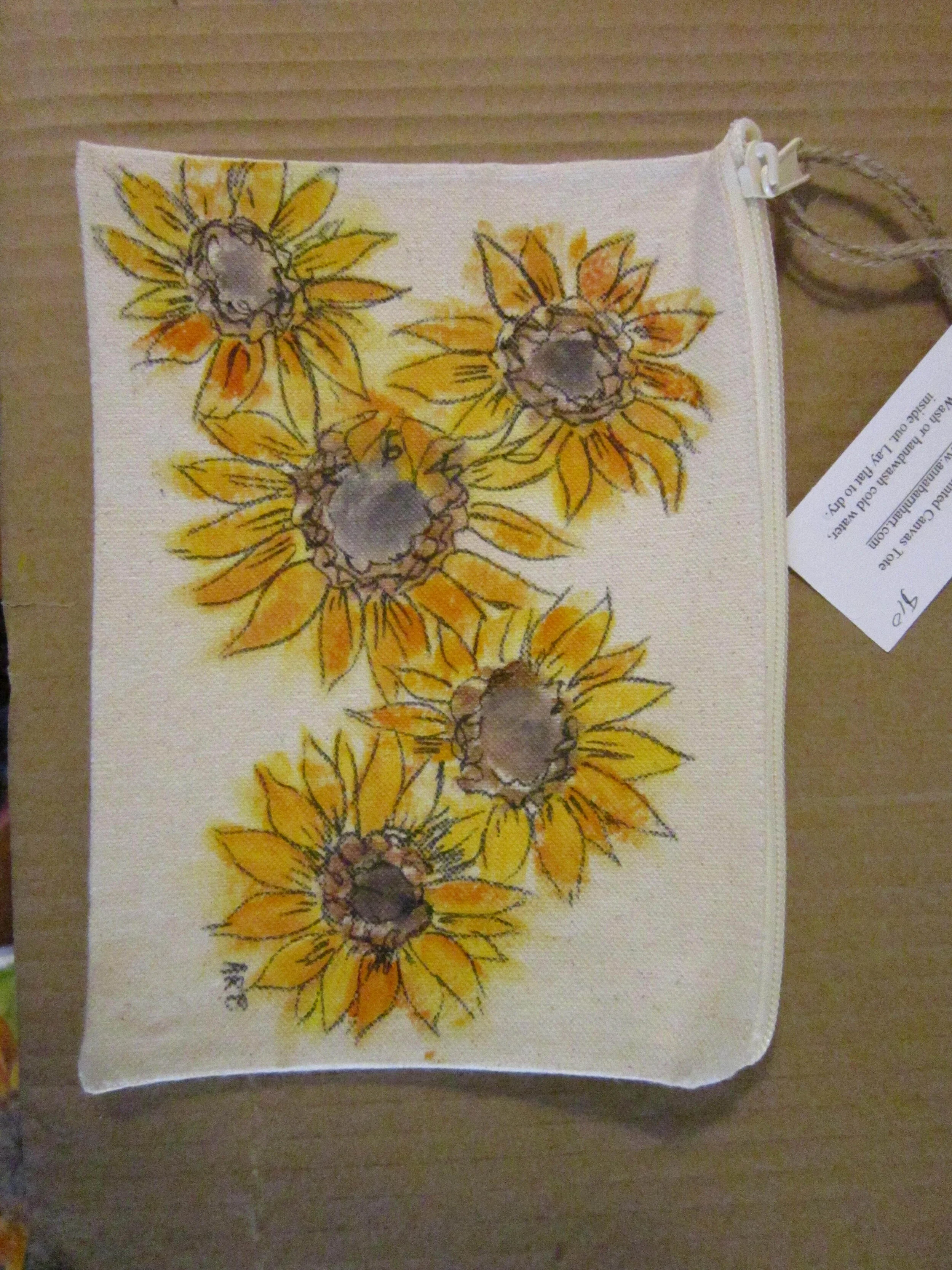 Hello! Here are some sample shots of the totes I create, individually painted and washable! I use heavyweight cotton totes to paint on, and some even have pockets!